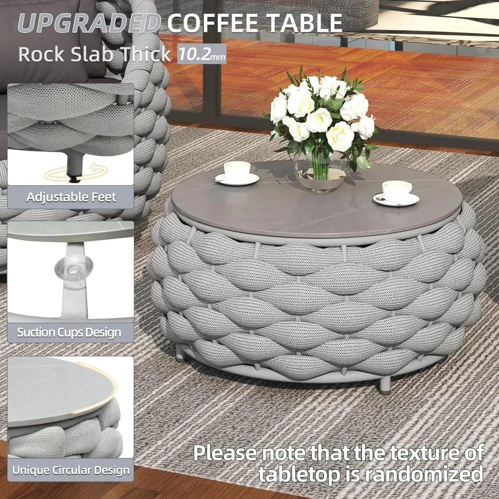 Create a stylish and comfortable outdoor retreat with this 6-piece aluminum sectional sofa set. Crafted with a durable powder-coated metal frame, it features plush, weather-resistant cushions that invite relaxation. The modular design lets you configure seating to suit your space—ideal for patios, gardens, or poolside lounges. Lightweight yet sturdy, this set blends modern aesthetics with practical all-weather performance.