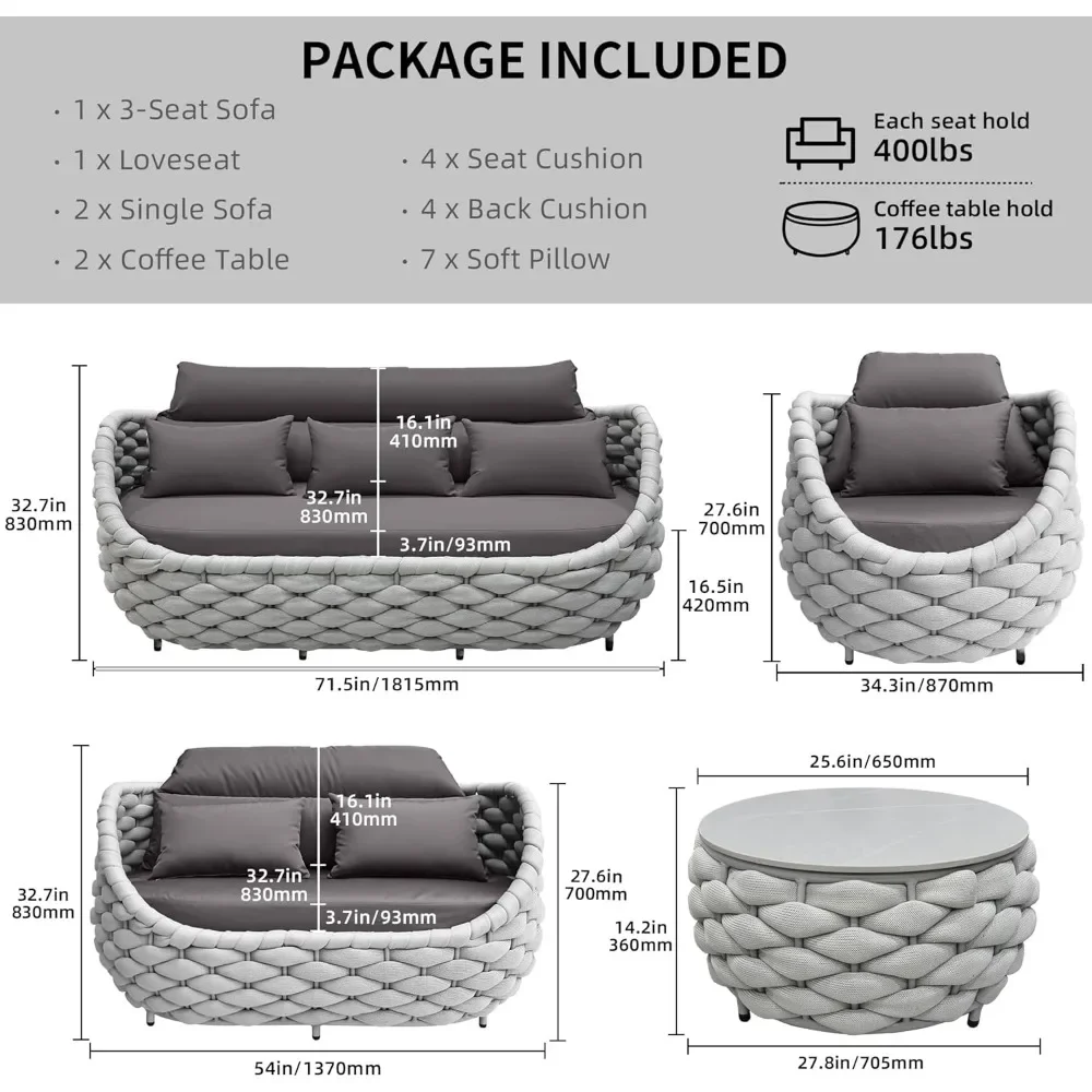 | Size | 6pcs ThreeseaterLoveseat 2 Armchair2 Table |