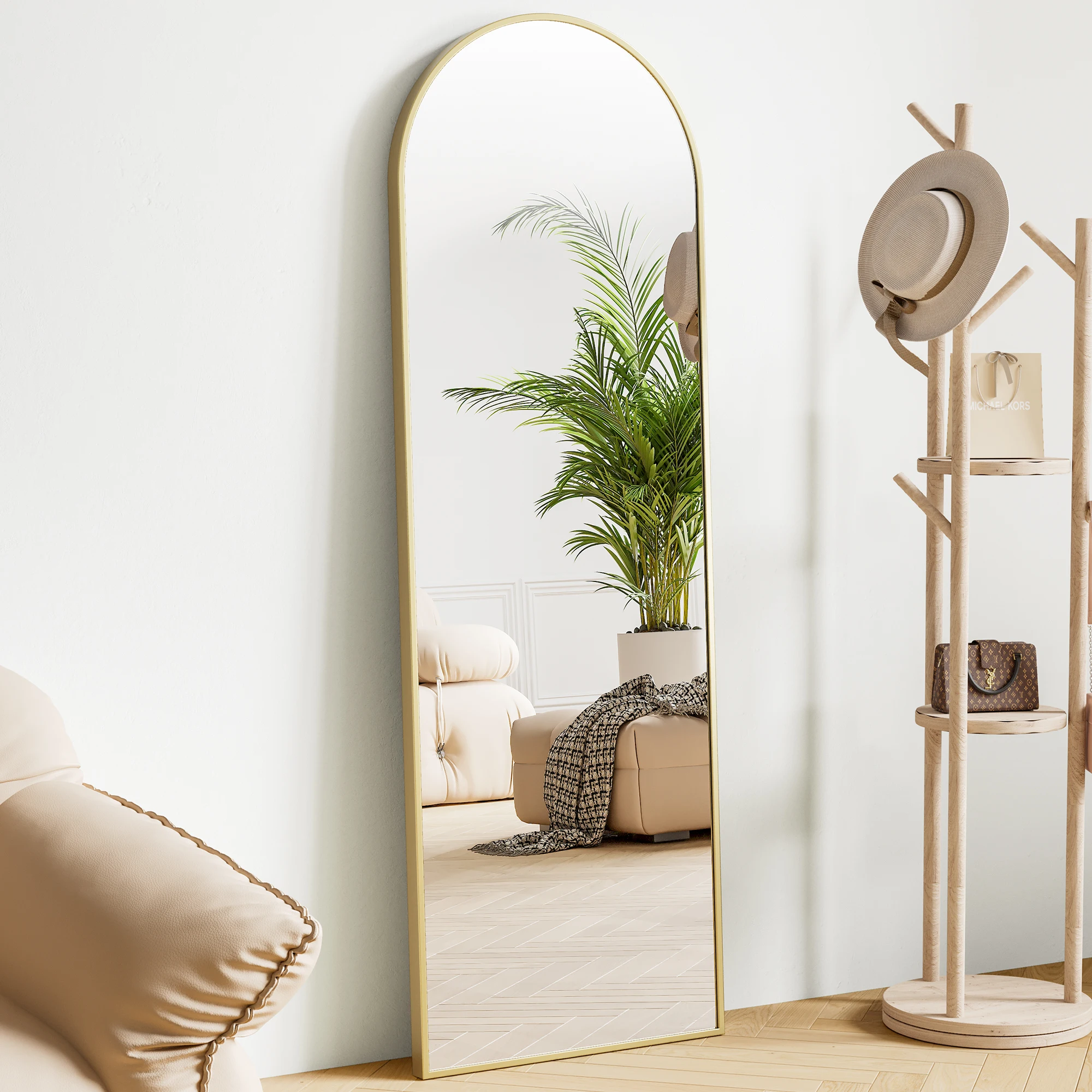 This mirror can be used in multiple ways—standing with its built-in support, leaning against the wall, or wall-mounted to save space. The sturdy frame ensures durability while maintaining a lightweight design for easy repositioning. Whether you’re adding depth to a room or creating a functional dressing space, this full body mirror brings both elegance and practicality to your home.