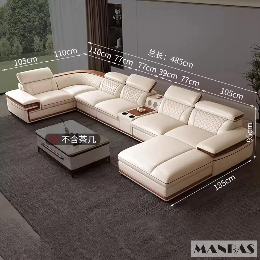 Built for smart living, this sofa set includes integrated Bluetooth speakers and wireless charging, allowing you to enjoy entertainment and convenience without leaving your seat. Perfect for upscale living rooms, this statement piece blends elegant Italian design with advanced functionality for a truly luxurious home experience.