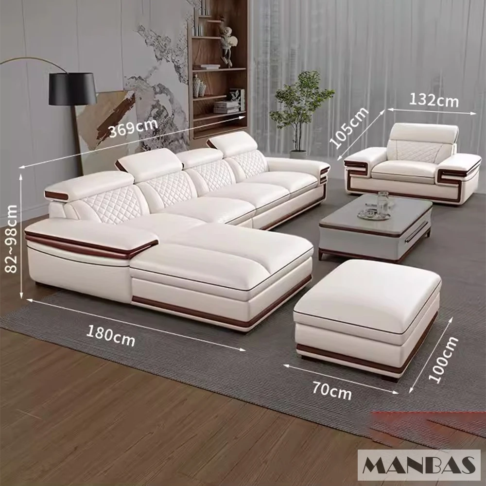 Experience modern luxury with the premium Italian genuine leather sofa set, designed to elevate both comfort and technology in your living room. Upholstered in high-quality genuine leather, it features adjustable headrests for personalized relaxation and ergonomic support.