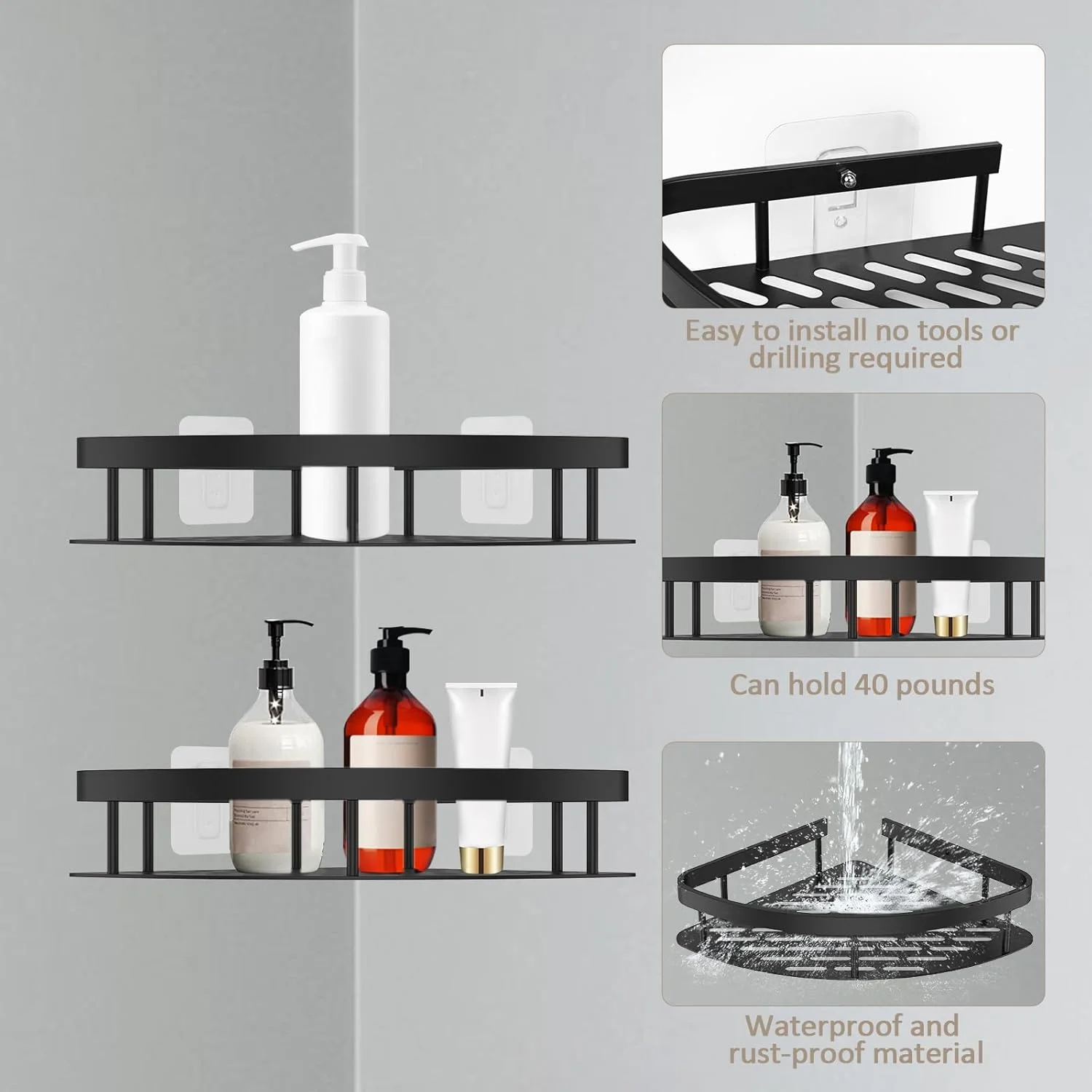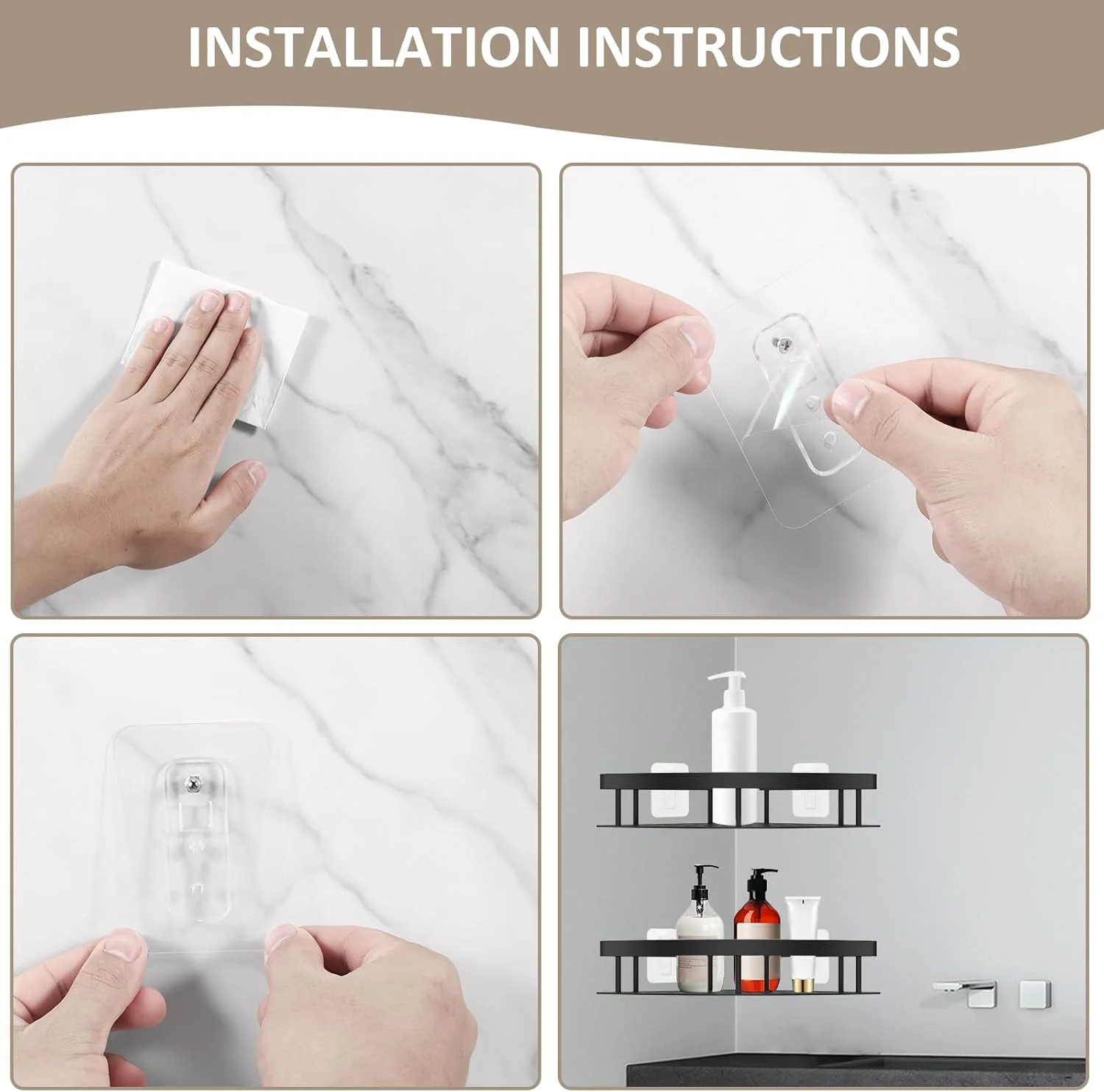 Keep your shower essentials neatly organized with this no-drill shower storage rack, featuring a two-piece adhesive corner shelf design for easy installation without damaging walls. Perfect for holding shower gel, shampoo, sponges, and bath accessories, it maximizes corner space while keeping items within reach.